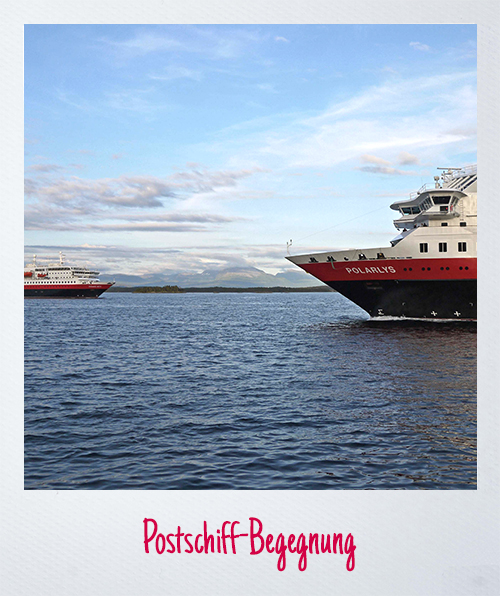 Während einer Postschiffreise kommt es täglich zu Begegnungen mit entgegenkommenden Postschiffen. Im Regelbetrieb sind 11 Postschiffe gleichzeitig auf der Kystruten unterwegs, somit gibt es bei einer kompletten Rundreise 20 Postschiffbegegnungen. Während der Fahrt wird dabei mit dem Schiffshorn gegrüßt, nachts mit Lichtsignalen. Und in Häfen können auch mal für kurze Zeit zwei Postschiffe gleichzeitig nebeneinander am Kai festmachen.